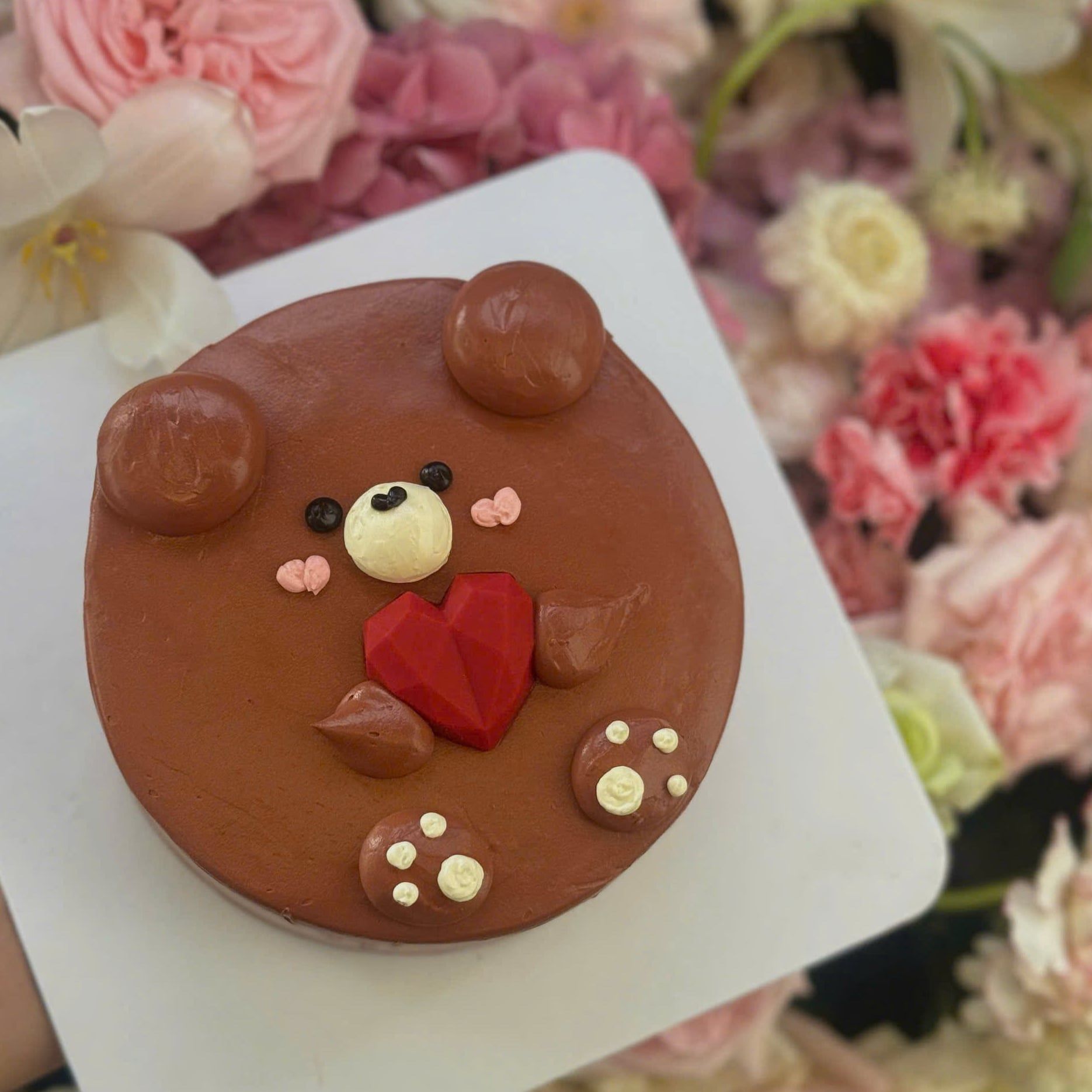 Gato gấu yêu vị chocolate. Sản phẩm không sử dụng chất bảo quản, trang trí bằng màu thực phẩm an toàn cho sức khỏe, đạt tiêu chuẩn kiểm định chất lượng. Bánh có thể đổi cốt gato và vị kem tươi tùy thích.
